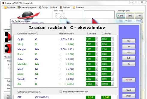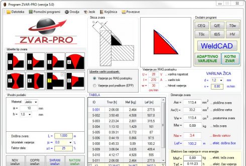 Program ZVAR-PRO ima vgrajenih tudi celo vrsto podprogramov, kot so: izračun ogljikovega ekvivalenta, temperature predgrevanja, vnosa toplote, ohlajevalnega časa, maksimalne trdote v zvaru, parametrov kotnih zvarov, itd.